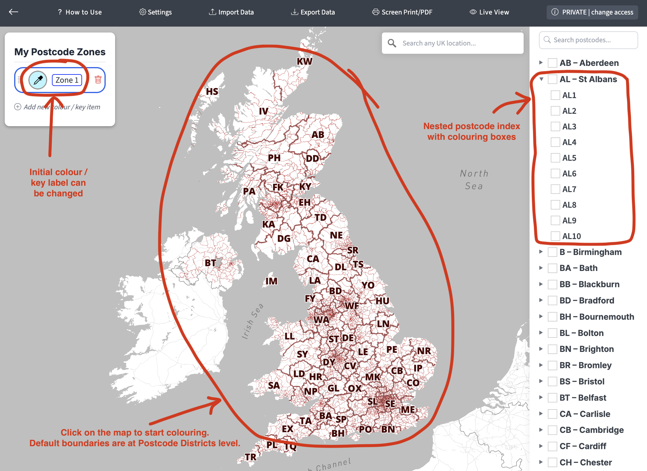 Downloadable postcode maps