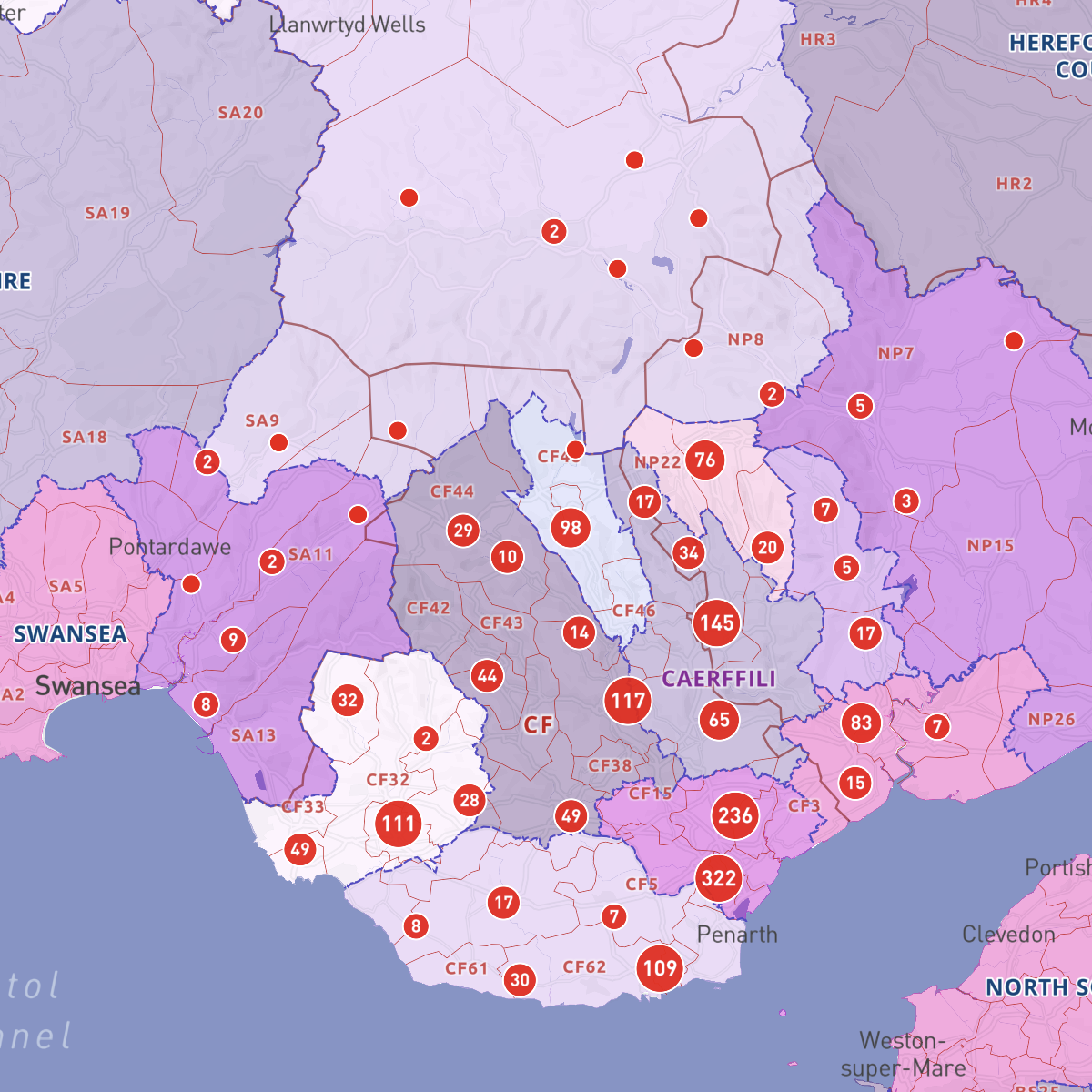 Use our Quick Select system to create your own postcode visualisations for planning and marketing. See more info